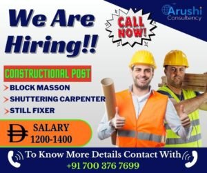 Dubai’s construction boom is unstoppable — from skyscrapers to highways, the need for skilled Indian labor is massive. Arushi Consultancy currently offers the following construction jobs in Dubai for Indians: